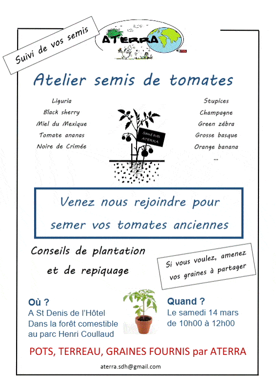 Un atelier pour apprendre à  semer des tomates anciennes est organisé par l'association ATERRA en ce joli temps presque printanier !