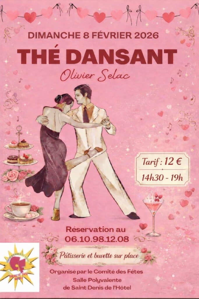 Le Comité des Fêtes de Saint-Denis-de-l'Hôtel invite l'ensemble des habitants à se joindre à son traditionnel Thé Dansant le dimanche 8 février en compagnie d'Olivier Selac.